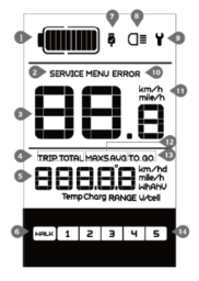 pendant 2-3 secondes. Une fois allumé, l’écran vous donnera des informations telles que l’autonomie de la batterie, le niveau d’assistance (1-5), la distance, etc.. Appuyez sur le bouton